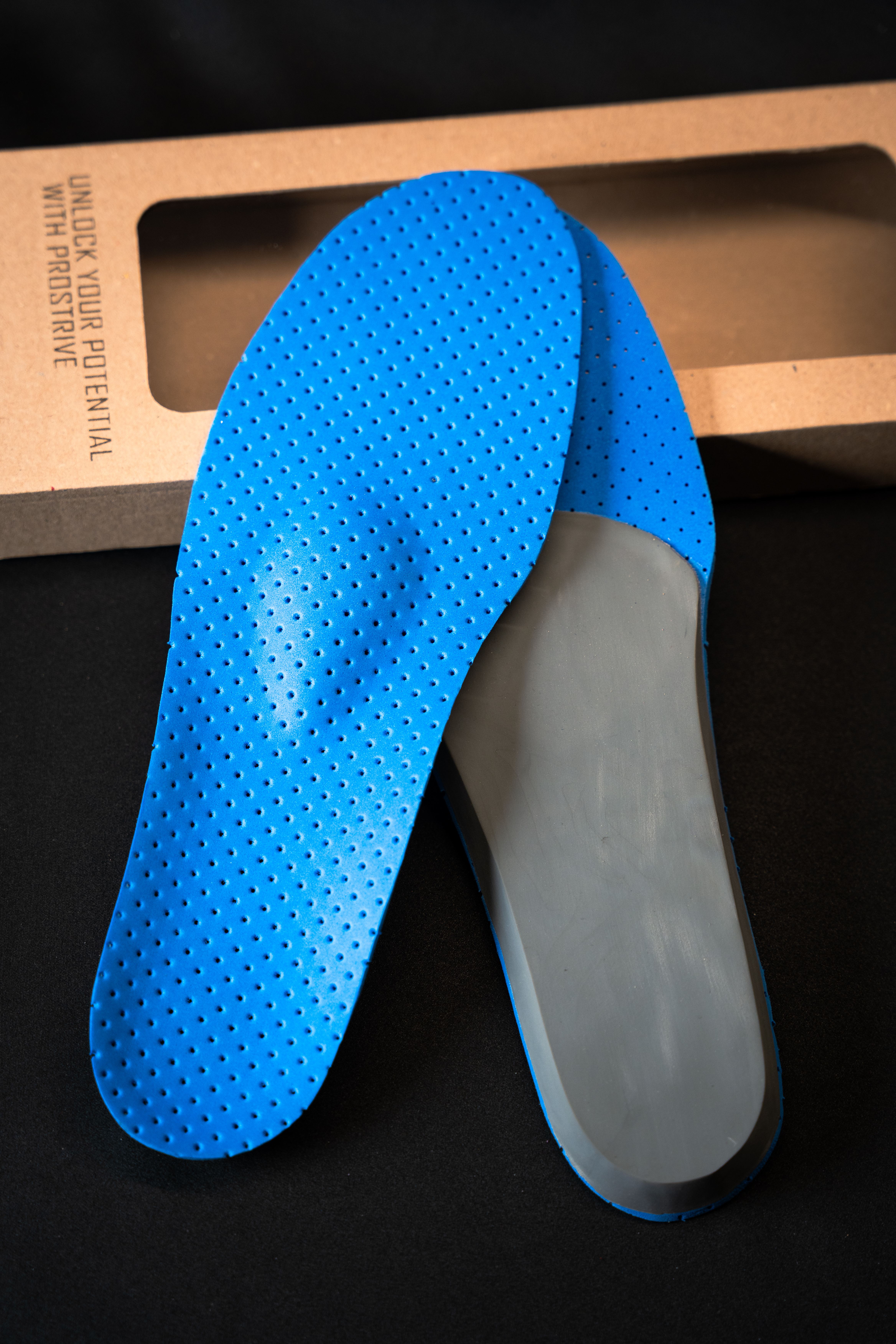ProStrive ALL DAY vložki so zasnovani za celodnevno udobje, razbremenitev in podporo pri hoji, stanju ali delu. Izdelani so iz vzdržljive sintetične gume in mehke, perforirane EVA pene, ki skupaj poskrbita za učinkovito blaženje pritiska in udarcev pri vsakem koraku.